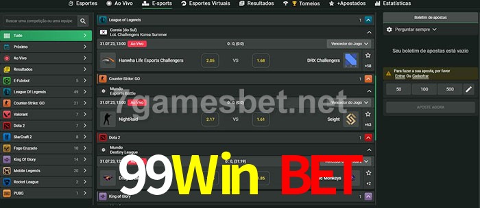 O 99Win Bet oferece uma grande seleção de opções de apostas em e-sports com probabilidades competitivas